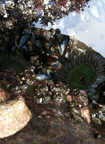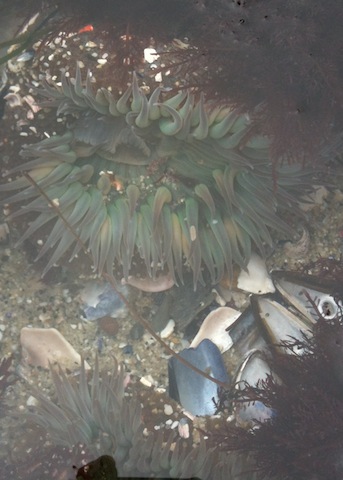A sea anemone seen in one of the pools left behind at low tide. I think I even tickled this one with my finger.