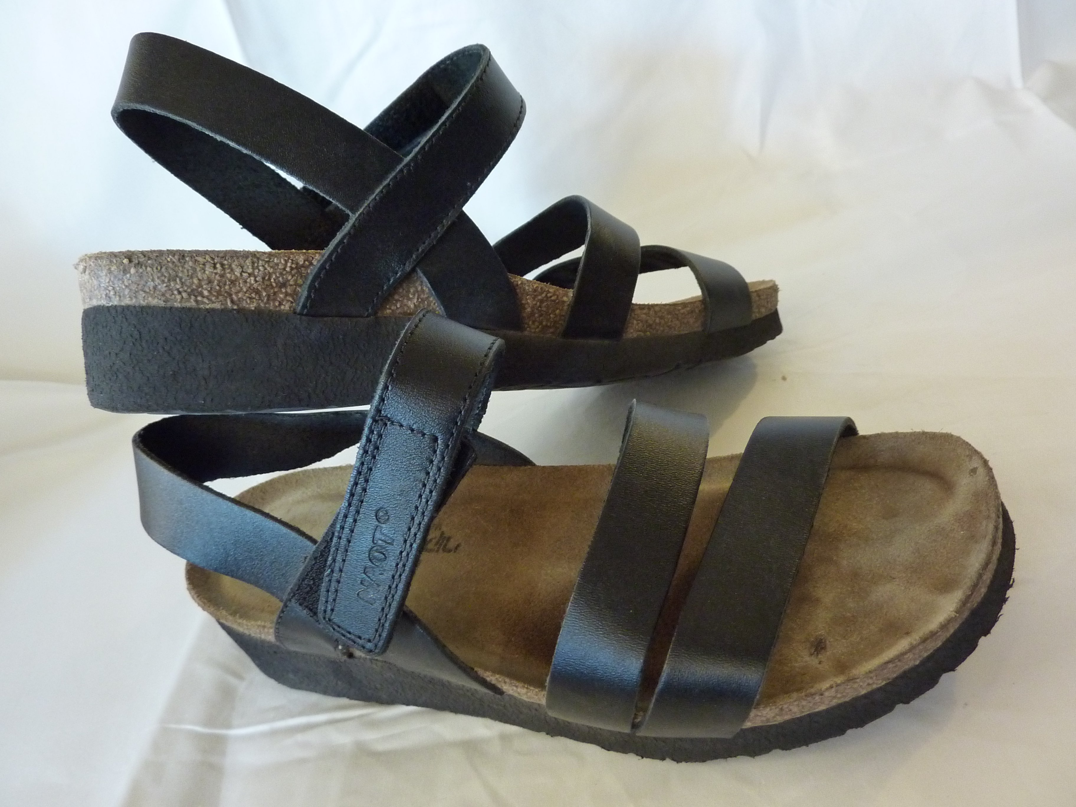 The Naot Kayla comes in a variety of colors. The ankle strap is adjustable, the footbed molds to my foot, and the sole is a textured EVA that allows for flexibility while providing stability.