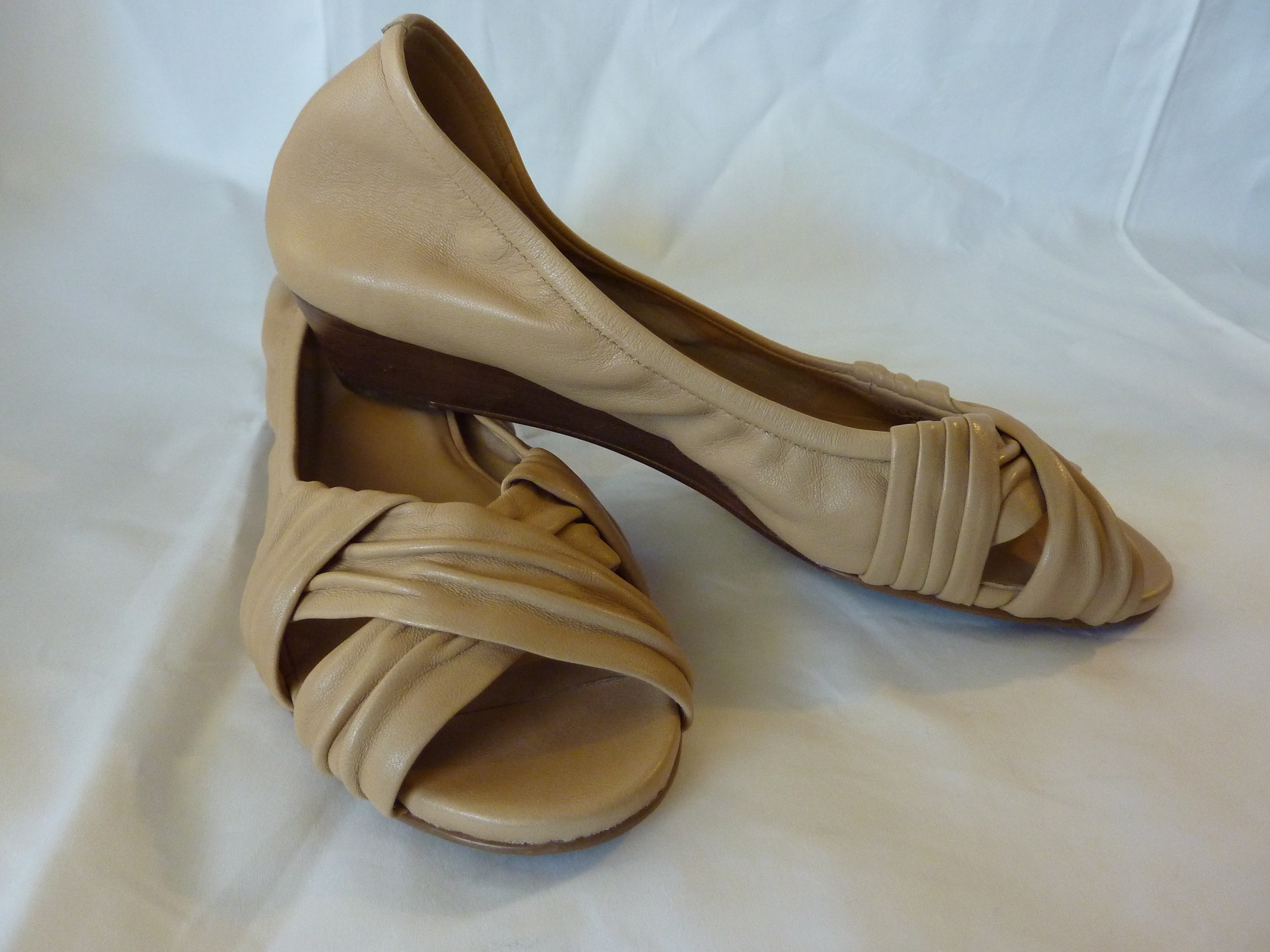 Although the leather is super soft on the 1-inch pumps by Cole Haan shown below, they are just narrow enough to pinch my toes and cause discomfort over the course of an afternoon. If your foot is particularly narrow about the toes, this style of shoe might be just the thing for you this summer. My toes, on the other hand, had to cram themselves into a tight space. Although the leather has some stretch and give, I still ended up with a blister on my smallest toes because it was too tight.