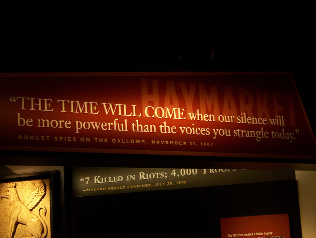 Some of the quotes found at the Chicago History Museum, with displays providing information about such events as the Haymarket Massacre. (Photo by Aaron Ray.)