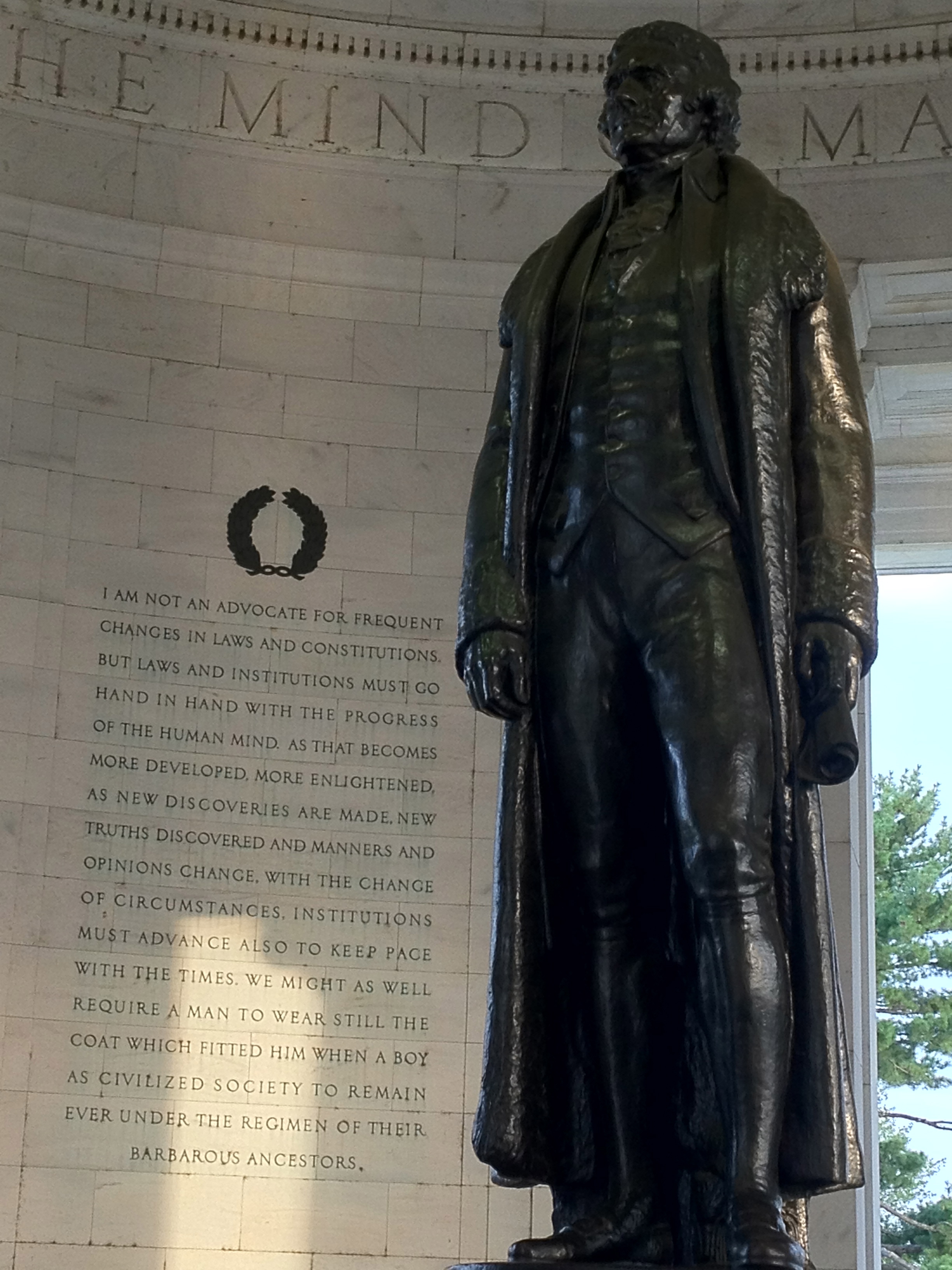 It doesn’t matter how often I go to DC, there is always something new to see or, more likely, something that changes because I have changed. As a high school student and a young adult I visited DC as a tourist. Plus, when I first graduated from college, I lived just outside of the city in Maryland for nearly a year. Many weekends were spent strolling around Georgetown, the National Mall and the National Gallery of Art. In all those trips and during all that time I had never been to the Jefferson Memorial. The Martin Luther King, Jr. Memorial, as well as the Franklin Delano Roosevelt Memorial were installed since the last time I visited (which had been a long time).