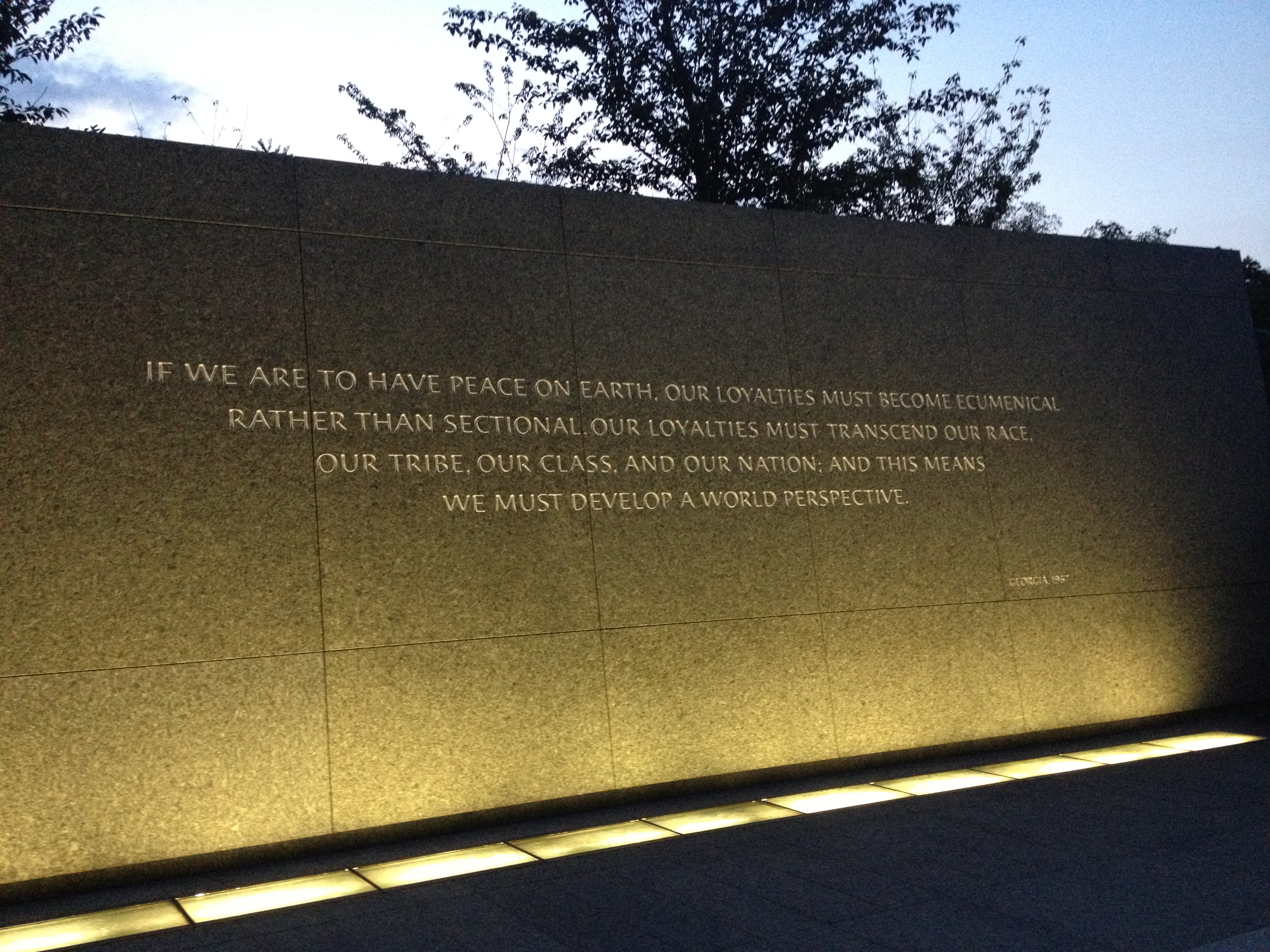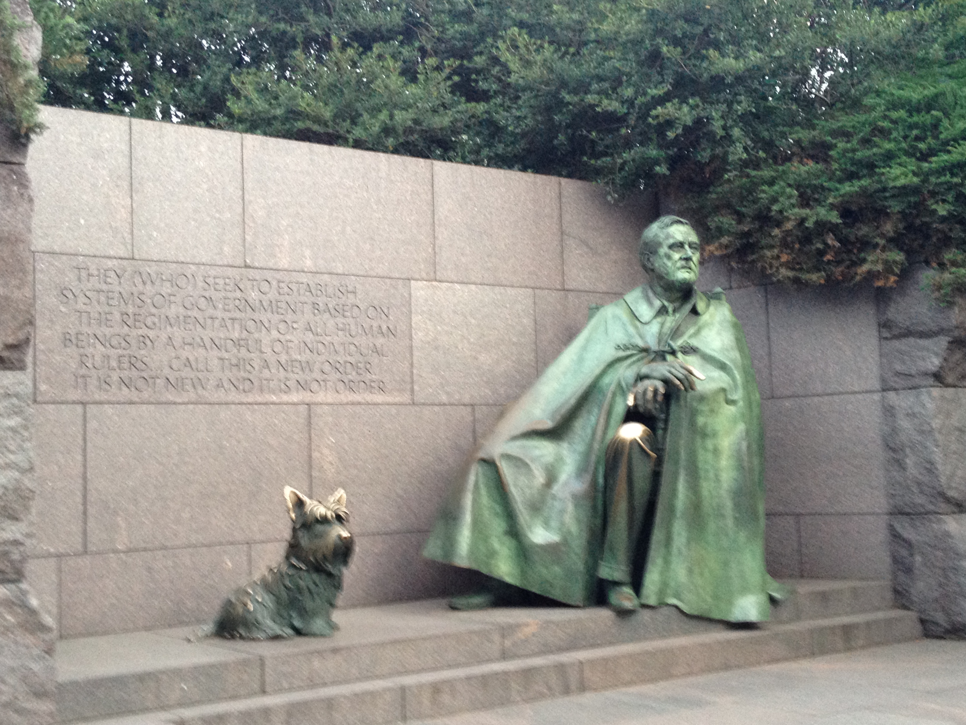 Thomas Jefferson Memorial.Inside the Thomas Jefferson Memorial.George Mason Memorial.Mama, Daddy, and Baby ducks hang out on the sidewalk around the Tidal Basin. In the distance is the Washington Monument.Franklin Delano Roosevelt Memorial. This is only one part of a large, four-roomed space.Franklin Delano Roosevelt with his dog.Martin Luther King, Jr. National Memorial.A wonderful quote from Martin Luther King, Jr.