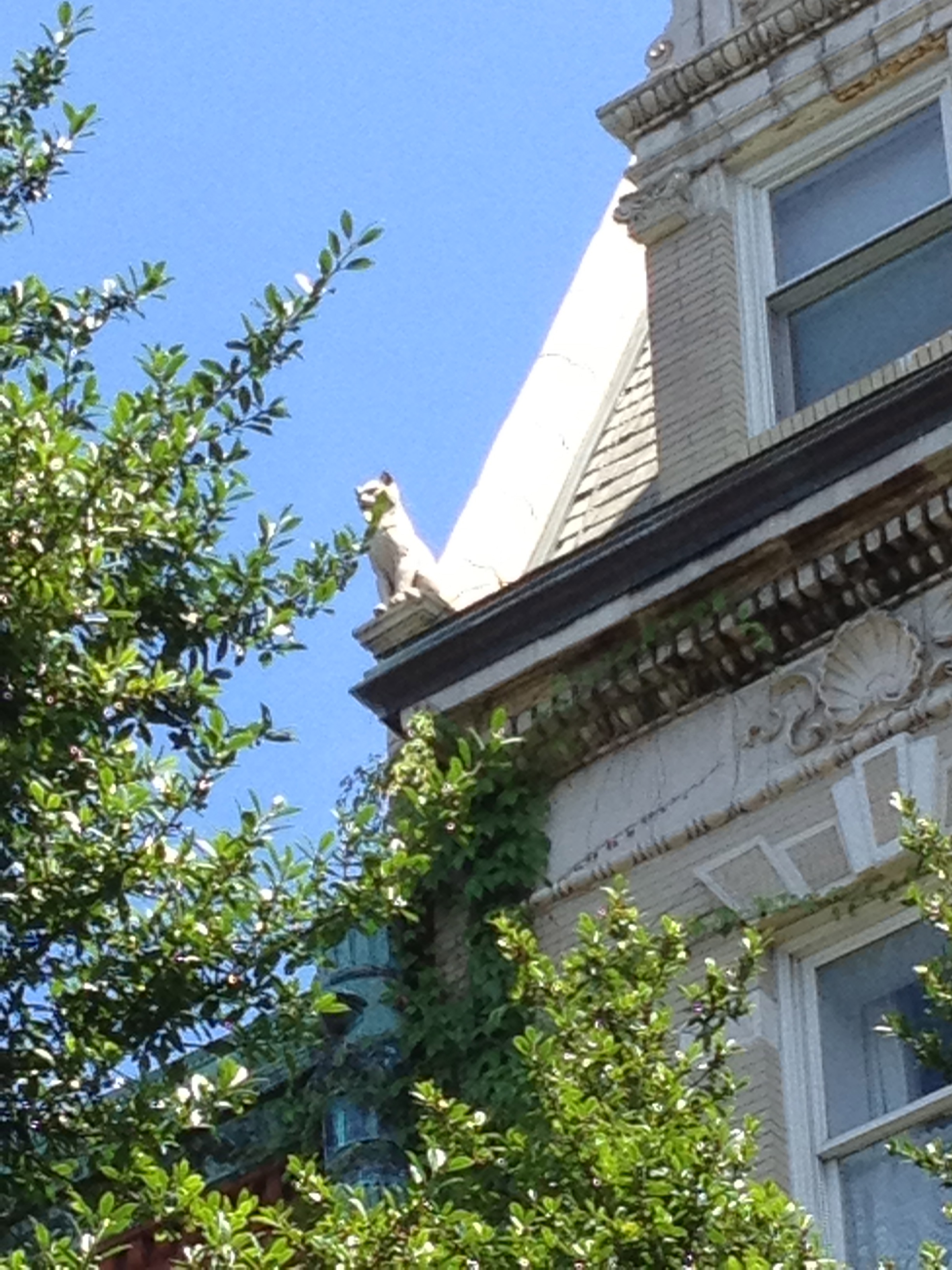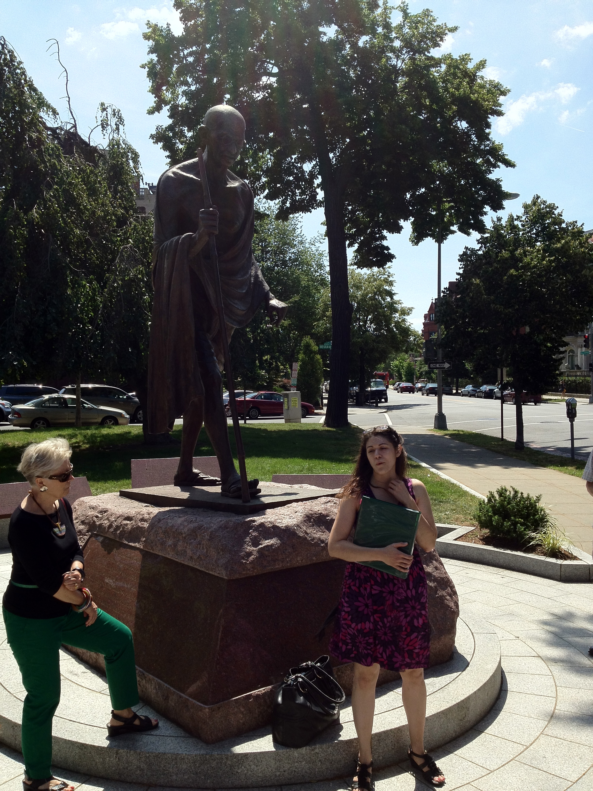 A statue of Ghandi stands in front of the Indian Embassy, while our talented guide tells us all about the history of this bustling area.Although this cat wasn’t officially a part of the tour, we thought it was cute, especially when we were told that it is dedicated in memory to an actual cat that used to live there and climb up on that roof to sit.