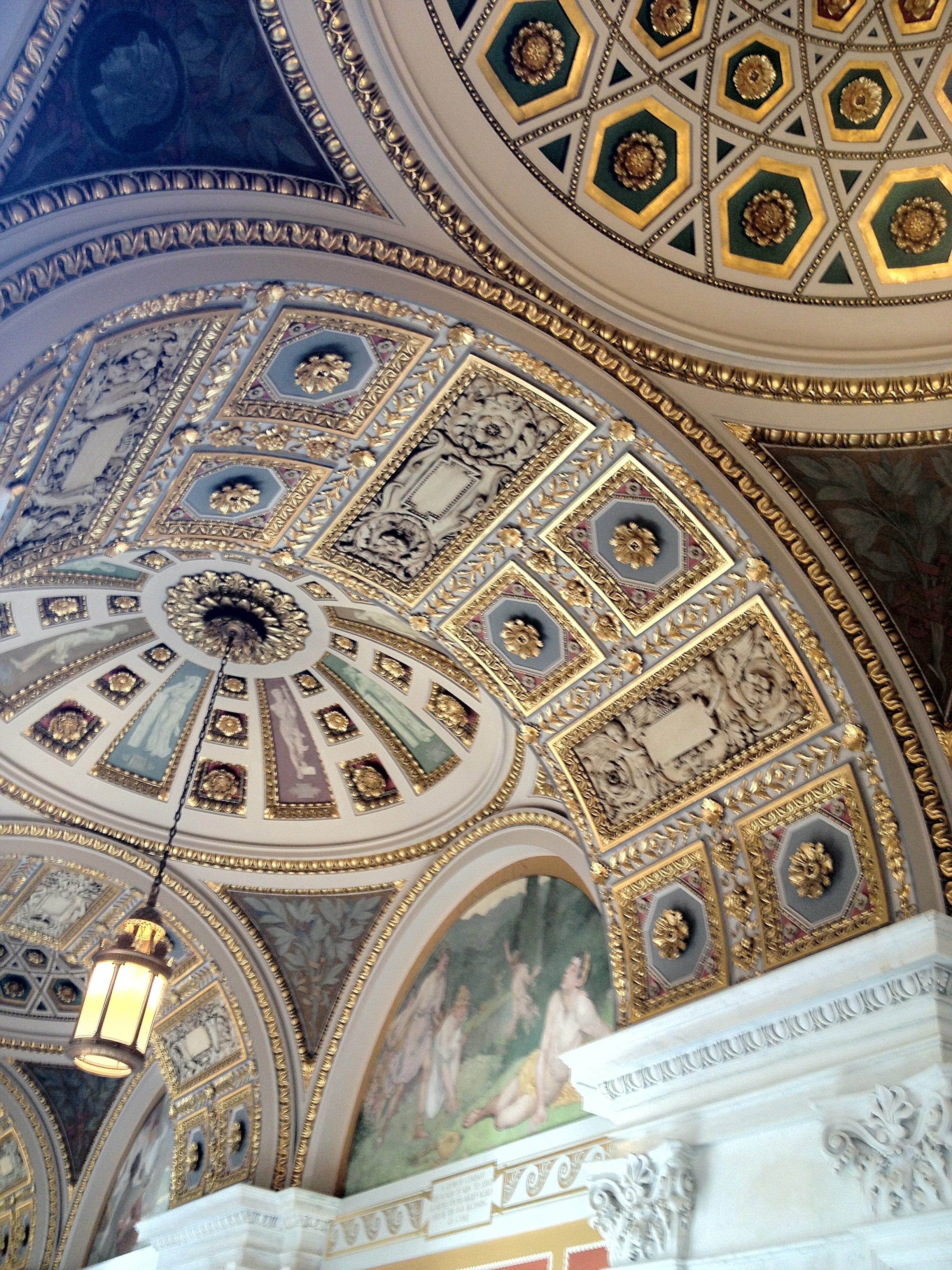 The Library of Congress is a stunning building and definitely worth exploring. We thought it would be a good idea to take a public tour provided by volunteer docents, but for us it was not a good experience. At least thirty individuals were crammed into one tour and a woman who seemed to struggle to get from one place to the next had an equally difficult time projecting her voice over the chaos of the public hallways. We ended up leaving before the tour was over with the promise to one another that we would return and, next time, take a private guide with us or explore using the Passport to Knowledge guides or the iPhone app.