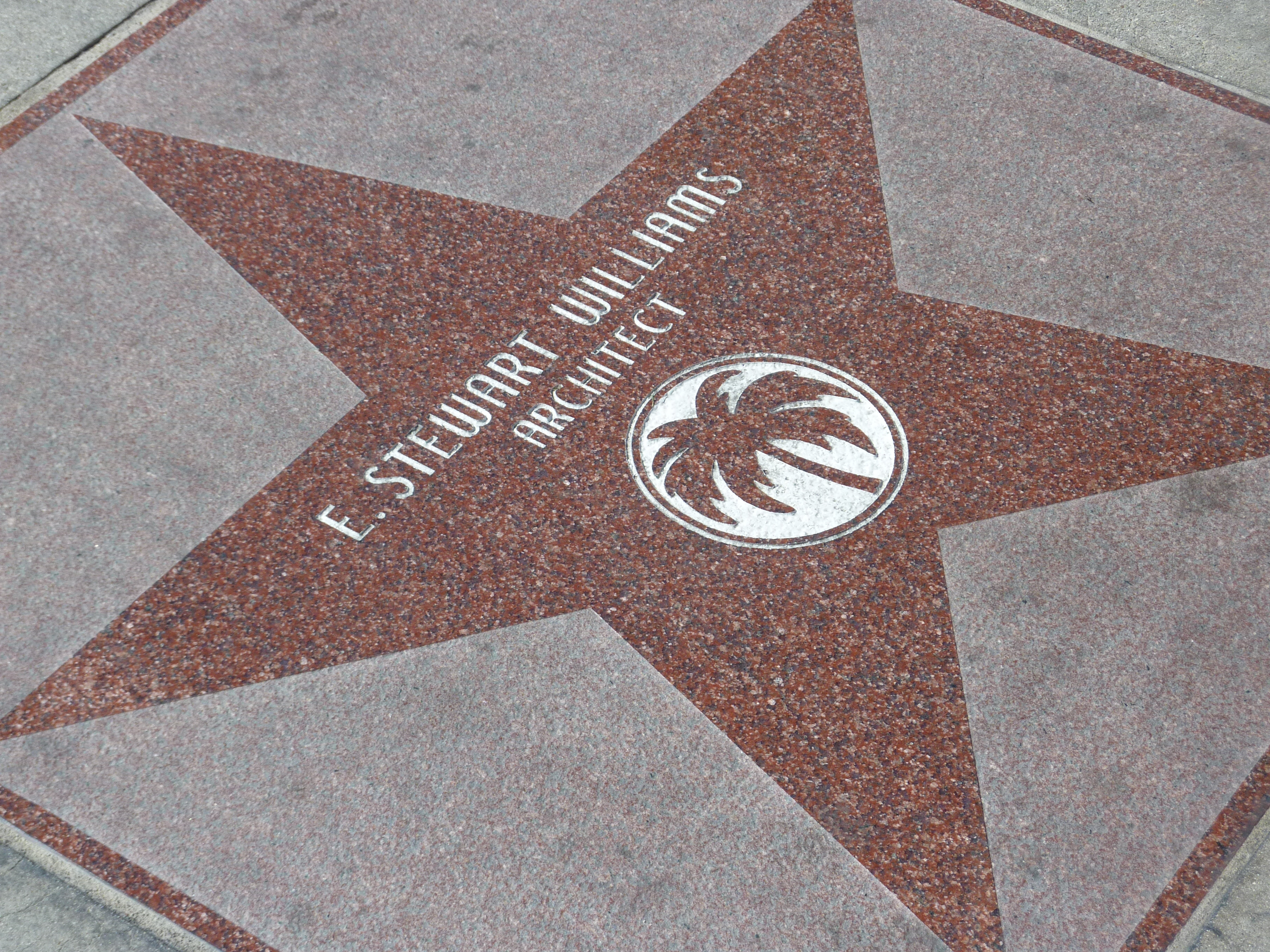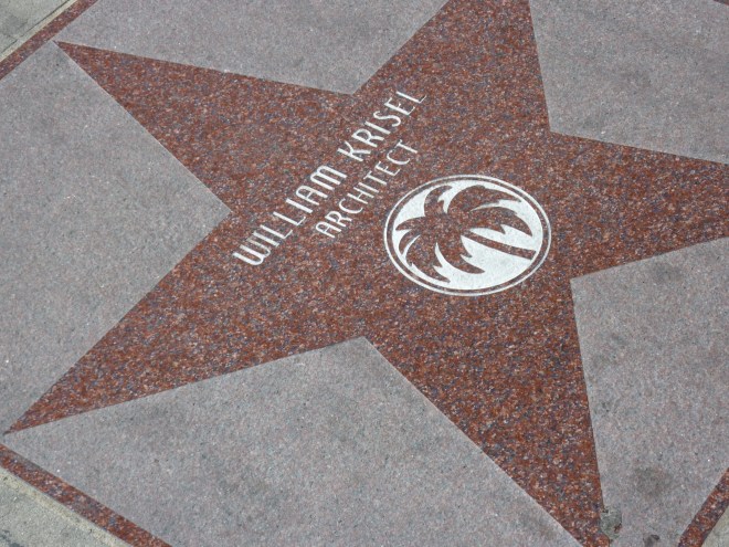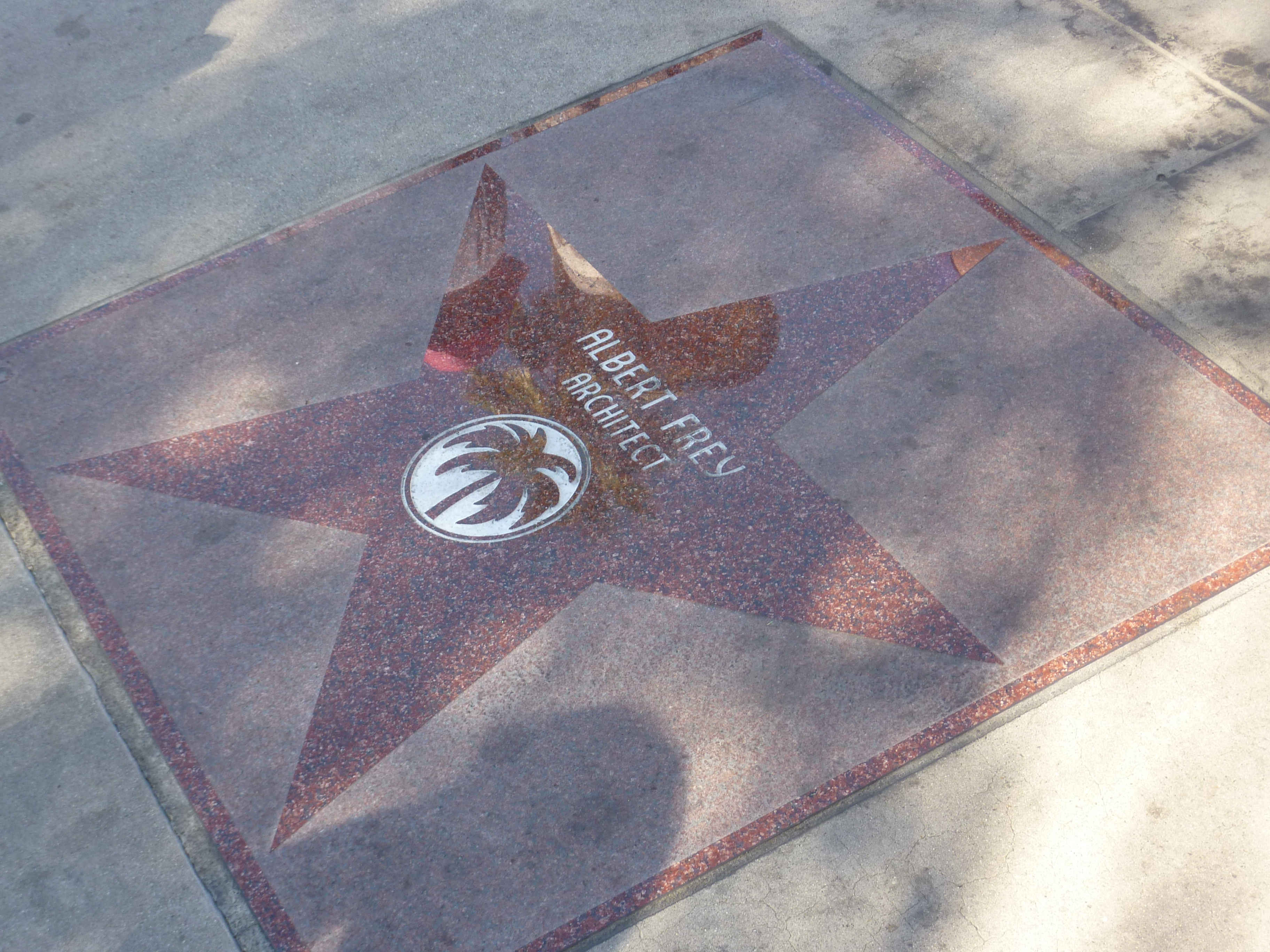 There are lots of other buildings along the route that have a wonderful connection to the modernist architects from the middle of last century. Palm Springs Art Museum and the Palm Springs Preservation Foundation have done a wonderful job of encouraging preservation of these buildings and homes. On the tours we have participated in, the names of the architects are spoken with deserved respect. On the sidewalks outside of the soon-to-be Palm Springs Art Museum’s Edwards Harris Center for Architecture and Design those same names so well-known and beloved in this beautiful city are preserved on a Walk of Fame.