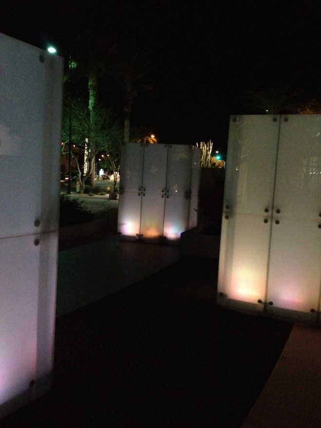 We also took the opportunity to walk through the Contemporary Art Museum, another free experience. A lot of the artists in that museum are from the area. It was a good reminder to see how talented people in the Phoenix area are. I have known that for a while, given the number of art walks and festivals held each month in various cities in the metro area, but this was a permanent reminder to the the community at large. Sadly, I was not able to take pictures inside the museum, but the building and surrounding gardens were works of art on their own, so Hubby and I took lots of photos of the outside.