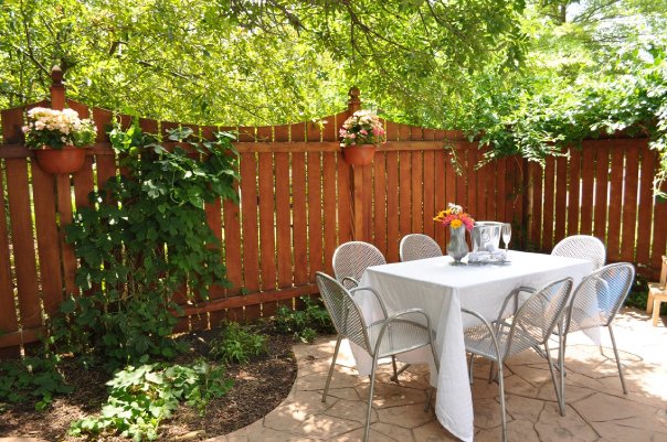 Sunny days were lovely in the shaded backyard. (Photo provided by Svein and Olga Berg.)