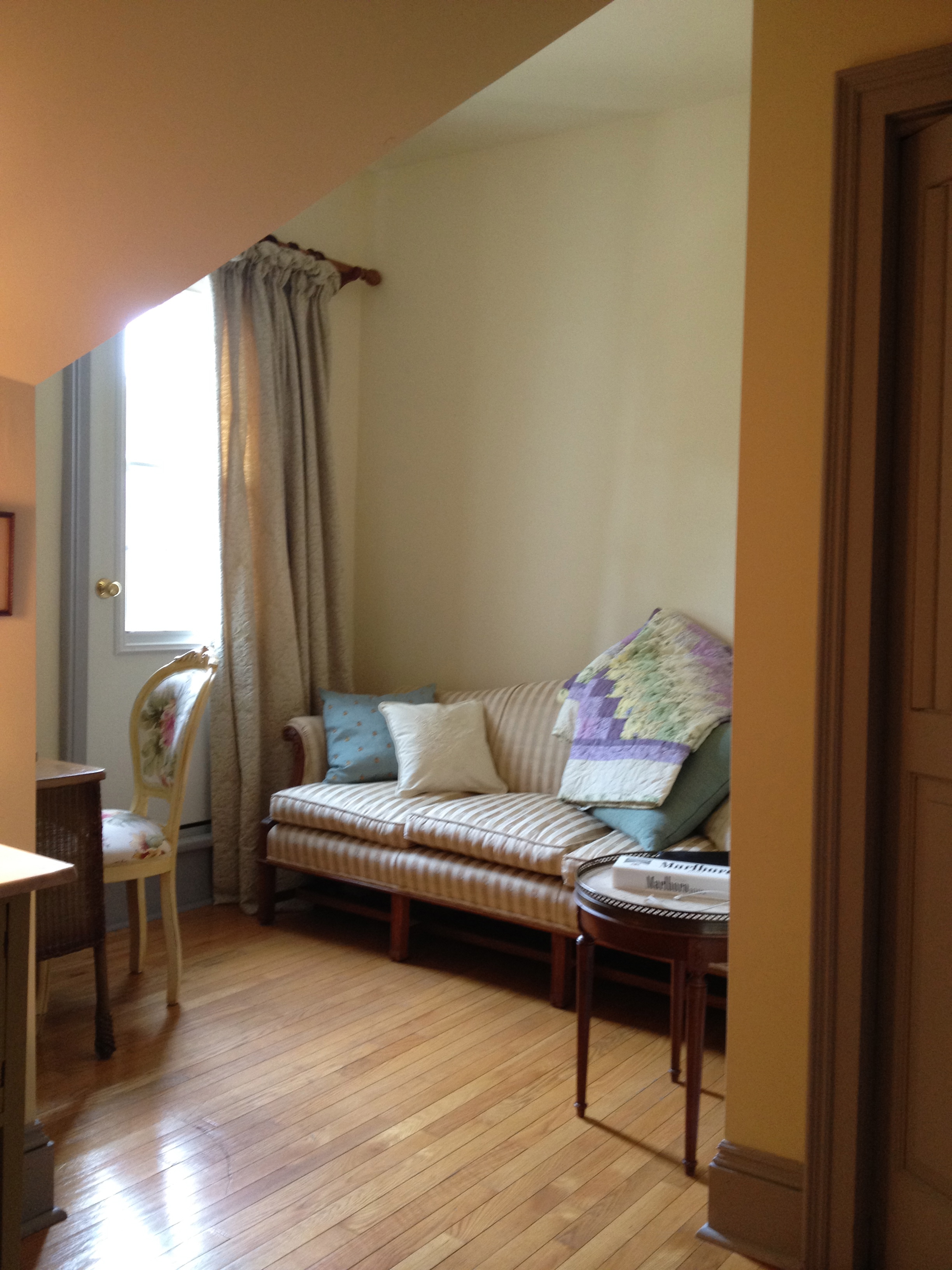 The Verandah has two bedrooms, both with queen-sized beds, and one-and-a-half baths. It has a full-size kitchen filled with glasses, dishes, pots, pans, and utensils–pretty much anything one might need to cook at home. There is an office with a large desk for those who must work while in Stratford, and they have high-speed wireless internet. For those times when you need to wash a load of clothes, there is a washer and dryer on site. For more images of The Verandah, go to my previous article.
